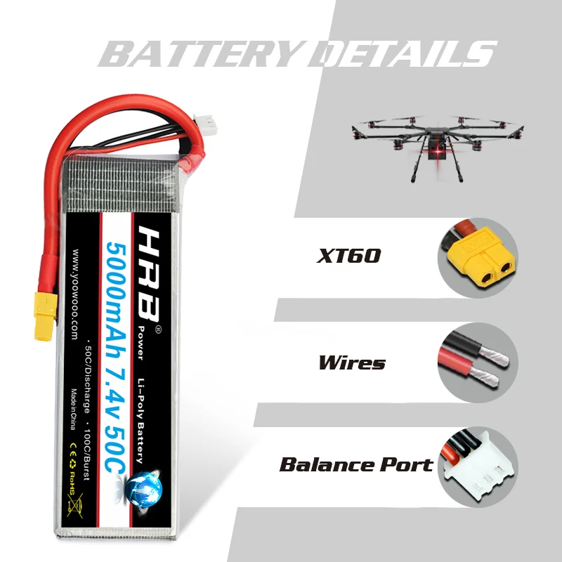 Review HRB RC Lipo 2S Battery XT60 T-DEAN TRX 7.4V 5000mAh 50C 100C for AKKU Car Boat Airplane Quadcopter